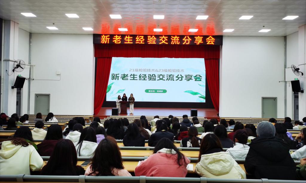 为进一步发挥优秀学生的示范引领作用,帮助2023级的同学更好地制定自己的职业生涯规划,加强新老生之间的学习交流,11月19日晚,医学院邀请了2023年全国技能竞赛检验检疫赛项二等奖获得者周志华、郑紫珊、甘甜在仁济楼小礼堂开展新老生经验交流分享会,149名23级检验技术新生参加。