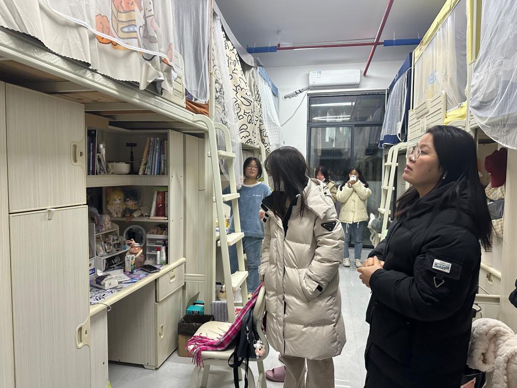 各班主任深入宿舍检查卫生、违规电器使用情况等,与学生亲切交谈,询问学习、生活上遇到的难题。
