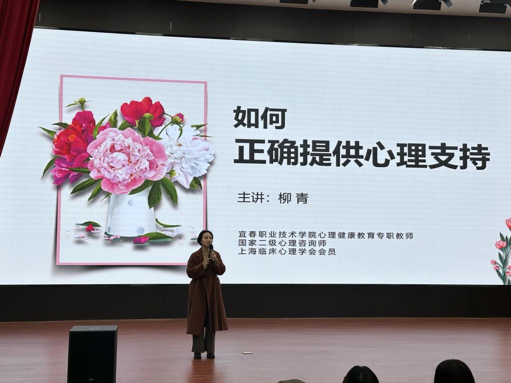 讲座上,柳青围绕“心理咨询”“如何开口”“一点技巧”三个方面给同学们带来生动有趣、通俗易懂的心理健康知识分享,结合真实案例说明了面对情绪不稳定、人际交往出现问题等情况应如何处理,告诉同学们面对压力要保持积极乐观的心态,放下自己心里的大山,寻找合适的方式去解压。