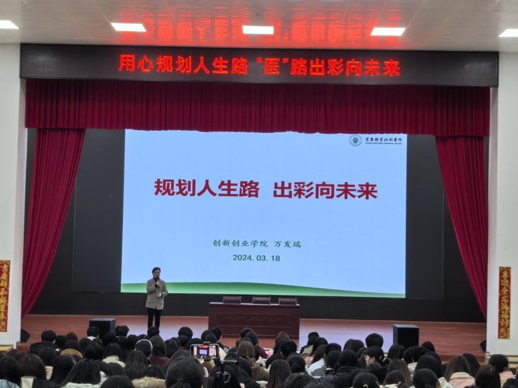本次讲座邀请了万发瑞进行讲授,她以“规划人生路 出彩向未来”为主题,引导学生增强规划意识,科学地做好职业生涯规划,明确学习目标及就业方向,顺利实现自己的人生理想和职业目标。医学院22级和23级约300名学生聆听本次讲座,辅导员刘清珍主持。