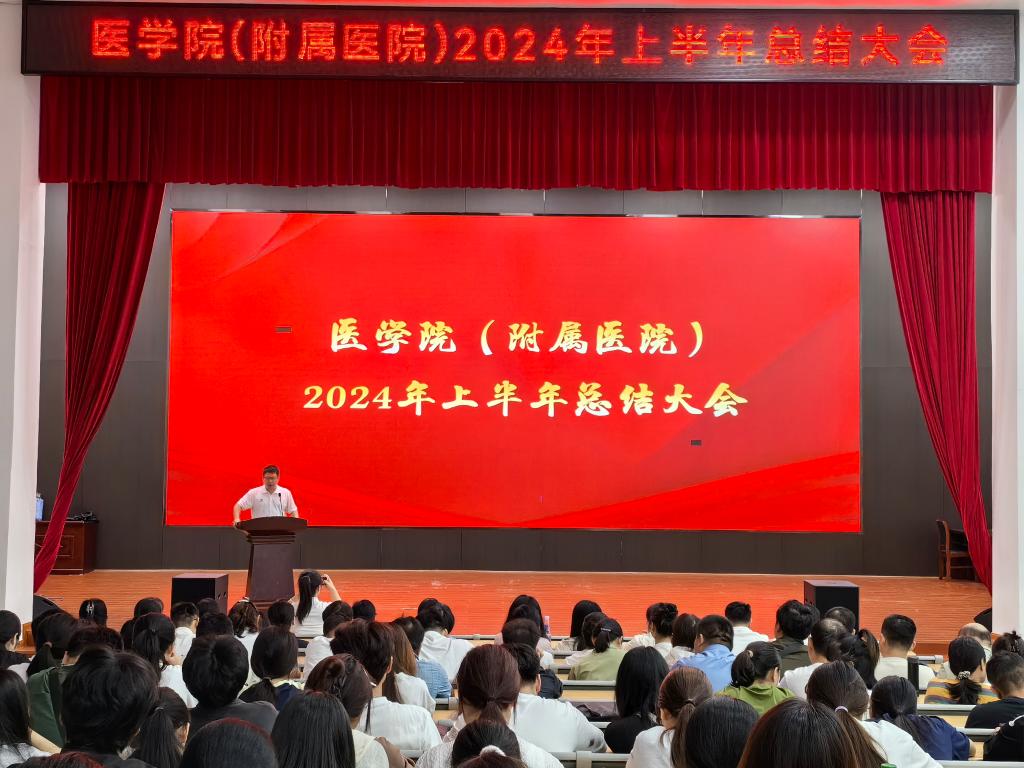 6月26日上午,医学院(附属医院)2024年上半年总结大会在仁济楼小礼堂召开。医学院(附属医院)领导班子、全体教职工以及学生代表等参加大会。会议由医学院副院长黄远珺主持。