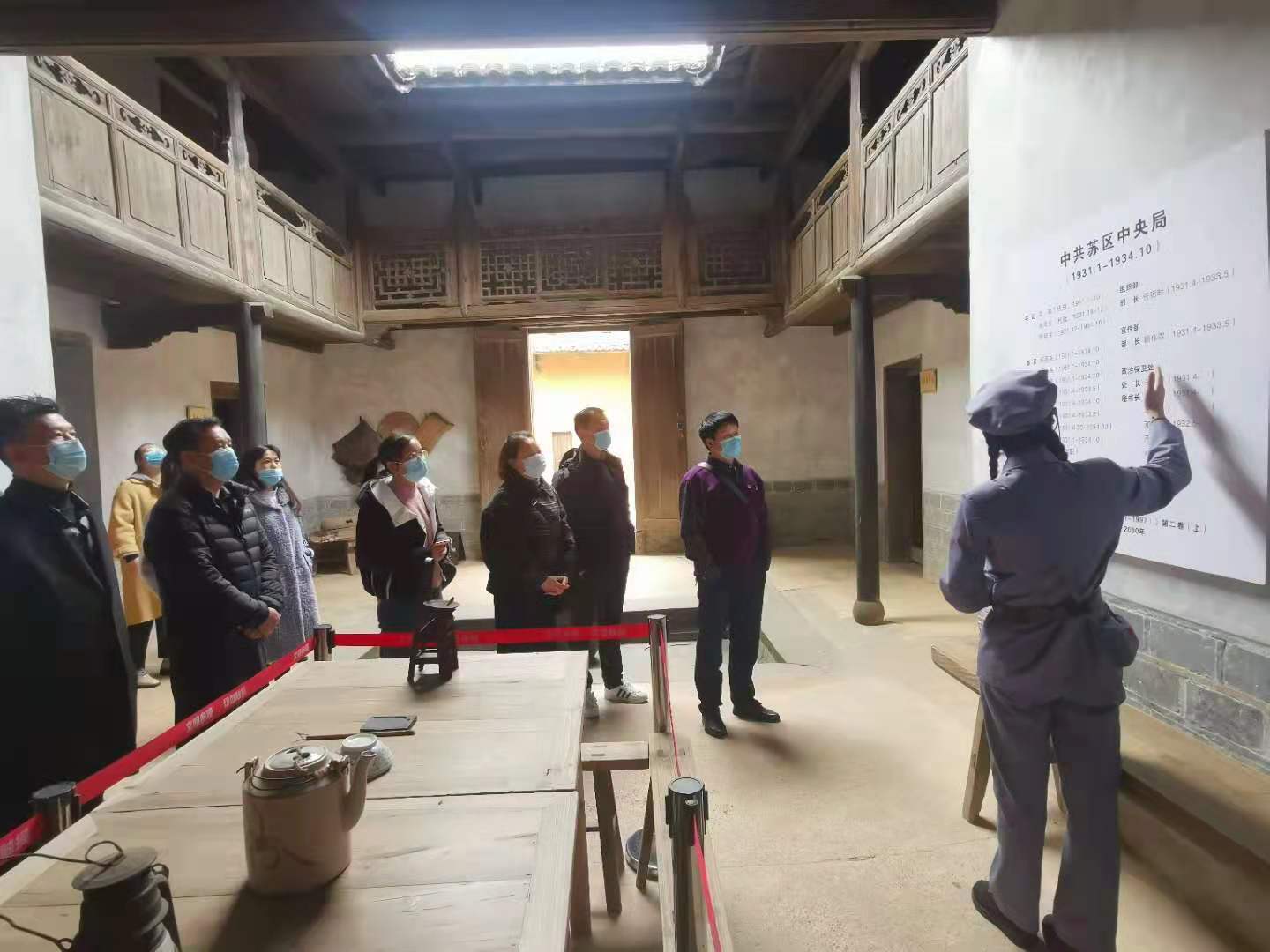 在瑞金,全体党员怀着无比崇敬的心情,先后参观瞻仰了沙洲坝红井革命旧址群、叶坪革命旧址群。在红井旧址群,参观毛主席故居,聆听毛主席带领民众开挖红井动人情景,品尝了红井中又清又甜的井水,感悟老一辈的艰苦奋斗精神和为人民服务的深厚情怀。在叶坪革命旧址群,聆听了讲解员关于红色政权建立的革命历史介绍,深入了解中国革命的苦难史及那些被历史尘封的历史细节,仔细观看了大量珍贵的历史实物、图片和文献资料,亲身感受了共产党领导下的中国革命的风云激荡、悲壮辉煌。在红军广场,全体党员庄重向红军烈士纪念塔默哀,致敬先烈英勇革命精神。在参观过程中,一幅幅珍贵照片、一件件历史文物、一段段真实史料,生动再现了中国共产党领导军民创建革命根据地、建立中华苏维埃共和国及开展治国安邦的伟大实践,使全党体员深刻感受到苏区精神的时代真谛。