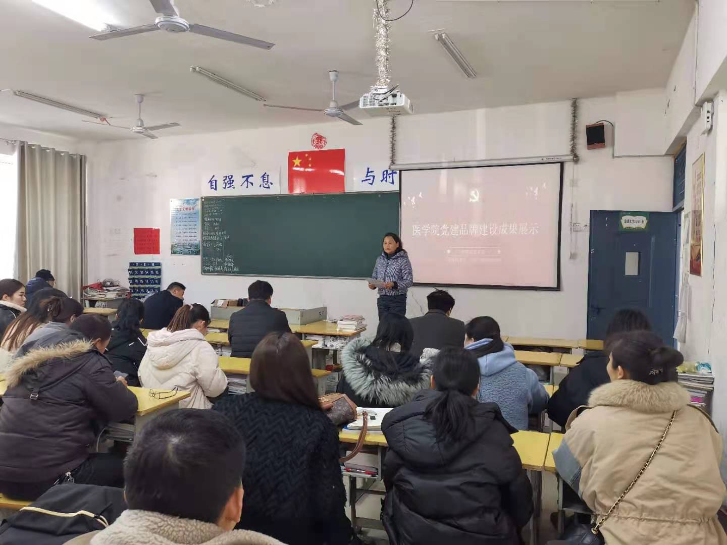 会上,党总支书记舒文同志用多媒体手段,围绕建设起因、学校部署、总支思考、品牌介绍、成果展示五个方面进行了阐述,充分展示了“立德立学‘医’路向行”的建设过程和品牌内涵。