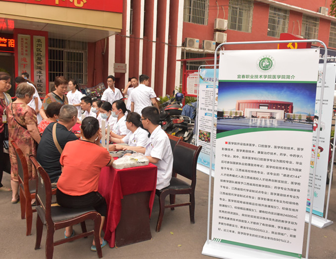 其余同志也分工协作,根据专业特长细心地为居民们测量血压,向他们宣教卫生保健知识、饮食安全、合理用药等方面的知识,发放健康宣传资料。
