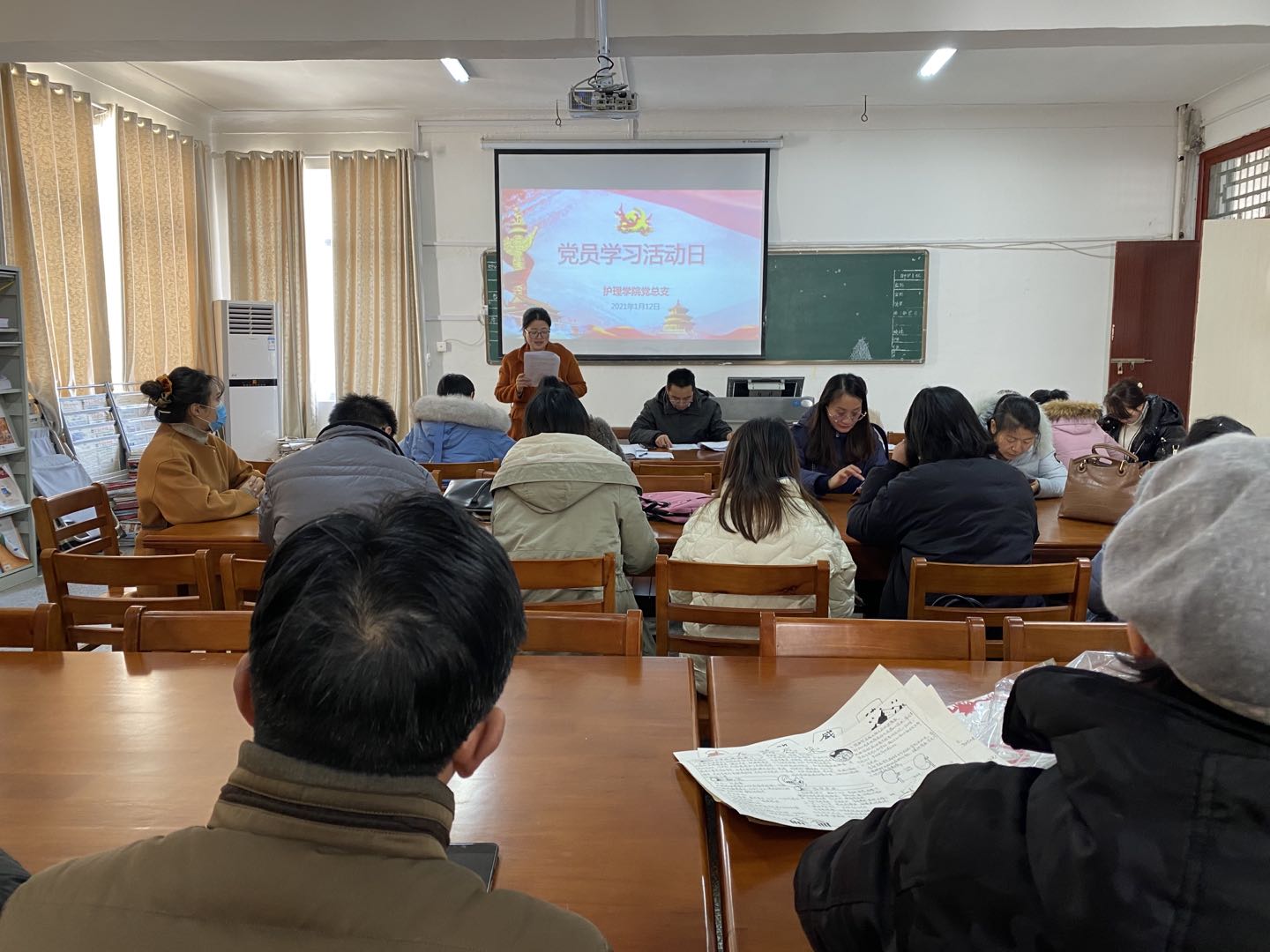 1月12日下午,护理学院党总支在五教楼阅览室开展党员学习活动。会议由党总支书记胡蓉主持,全体党员参加。