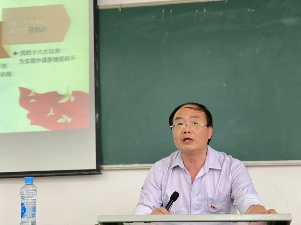 “今年是中国共产党成立100周年,中国共产党经历了革命时期的血与火的考验,领导中国人民走过了波澜壮阔而又艰难曲折的奋斗历程,取得了举世瞩目的辉煌业绩……”刘校长从百年大党历史担当、矢志践行初心使命、感悟思想伟力汲取奋进力量三个方面阐述了中国共产党始终坚持以实现中华民族伟大复兴为己任,领导中国人民不懈奋斗,在革命、建设、改革的伟大实践中谱写了中华民族自强不息、顽强奋进的壮丽史诗。最后,刘校长对全体师生提出希望:一要明方向,做政治坚定的明白人;二要增技能,做业务精通的领头人;三要顾大局,做凝心聚力的守护人;四要转作风,做学生思想的引路人;五要克时艰,做开创新局的拓荒人;六要知感恩,做作为担当的情义人;七要守清廉,做循规蹈矩的本分人。