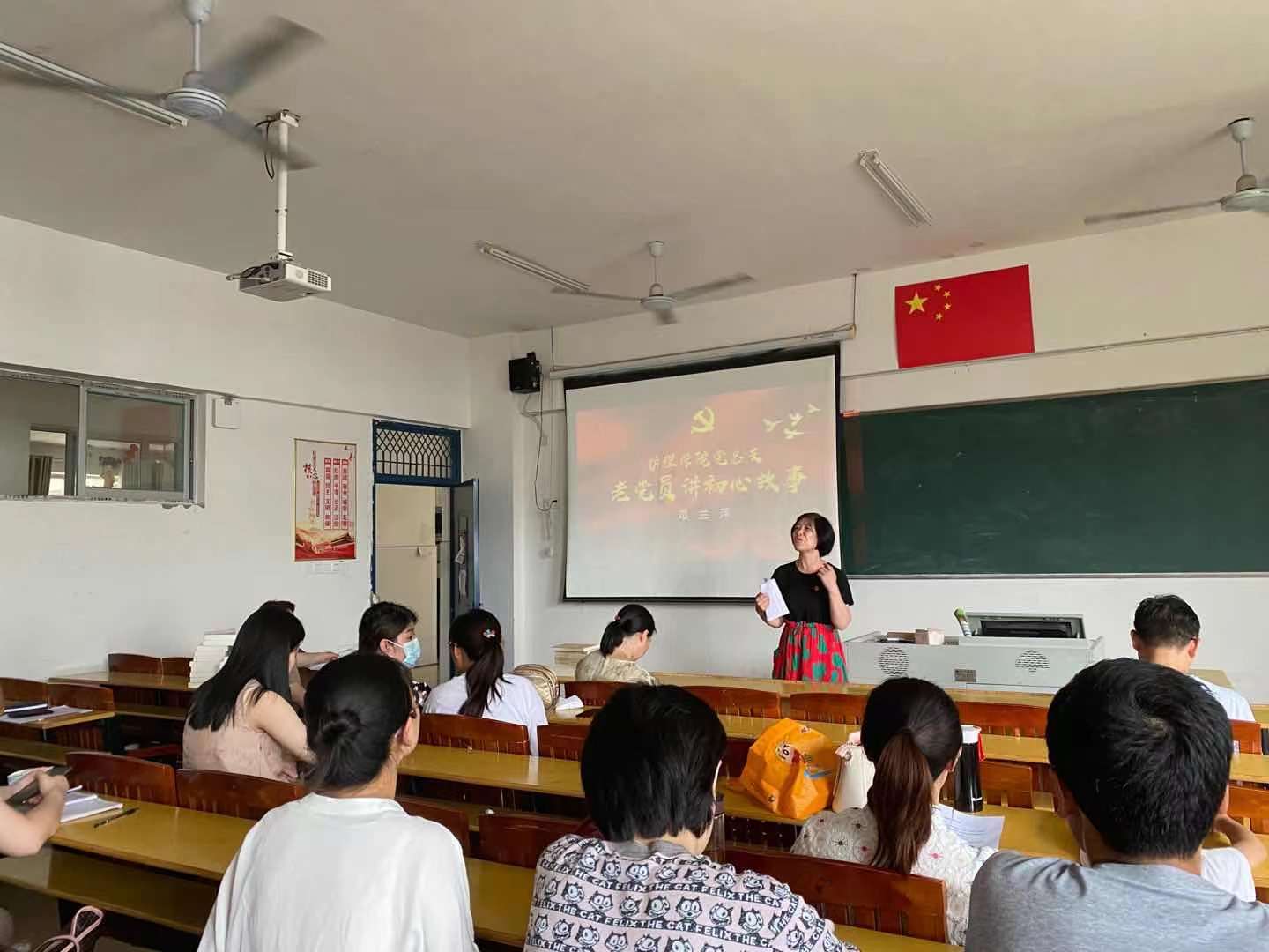 邓兰萍同志1987年10月加入中国共产党,已有35年党龄,是护理学院党总支党龄最长的党员教师。她从参加工作默默无闻讲起,讲到不怕苦不怕难,到积极参加下乡支援活动,讲到主动请战“非典”等。她说,她的初心不过是做一名普普通通问心无愧的好护士,好教师,好党员。