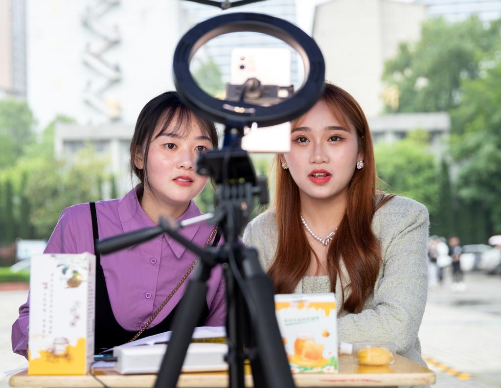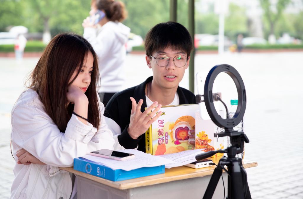 4月28日下午,一场以“五·四”接力大直播为主题的抖音直播带货活动在英国上市公司365第一教学楼前拉开帷幕。本次活动由校党委宣传部、团委、创新创业学院主办。来自护理学院、医学院、师范学院、财会金融学院等学院的八支队伍参与活动。