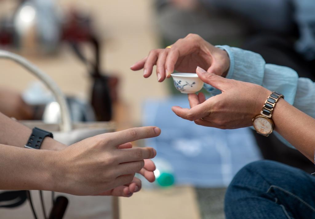 舞蹈《奔跑的青春》为茶会拉开了序幕。大家在一片宁静、美好的氛围中席地而坐,开始泡茶品茶;随后,校茶艺协会的学员们一一向大家展示了红茶、花茶、绿茶茶艺的冲泡程序,大家在优雅古典的名曲中品出了大自然的气息以及“人生百味”的感悟。在茶艺展示的过程中,同学们纷纷向自己的母亲敬奉一杯茶,大家在活动中更加懂得了知恩、感恩、报恩的道理。