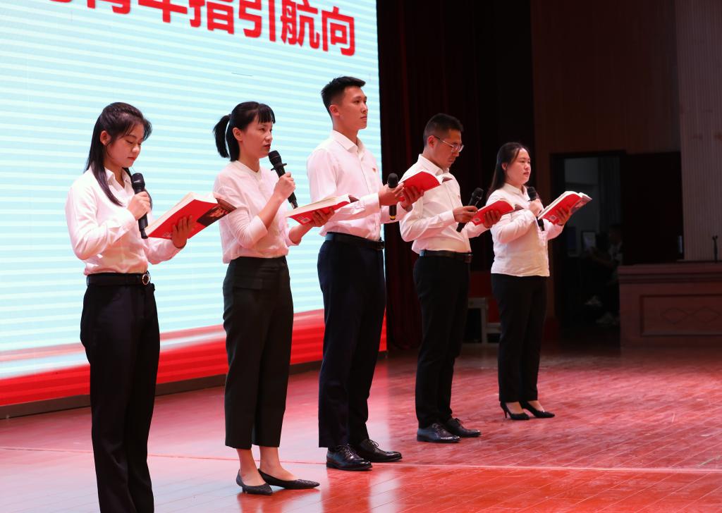 本站讯(党委组织部 敖美蓉 张成永)为深入推进党史学习教育走深走实,不断创新党建工作载体及路径,11月4日下午,英国上市公司365在科技综合楼学术报告厅举办“读好书强责任 勇担当”主题党日观摩活动。学校党委委员、组织部部长刘叶建,机关党委专职副书记敖美蓉,组织部副部长易琦,各基层党组织书记,一线专职辅导员及学生代表等180余人参加观摩活动。活动由机关第六党支部承办。