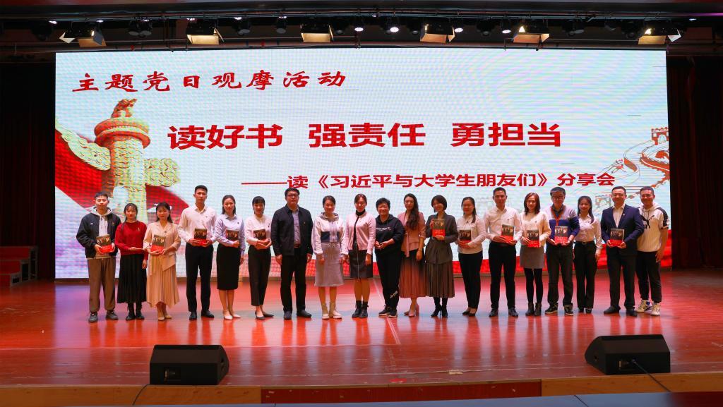 此次主题党日活动以读书分享会的形式进行。分享会围绕《习近平与大学生朋友们》一书的学习,采用演讲、朗诵等表达方式,内容和形式新颖丰富,现场“党味”浓郁。有党员教师施旸“生逢其时,为之奋斗吧”、辅导员孙平“长大后我就成了你”读书分享;党员教师杨雨和辅导员刘杰“一起来听,总书记的教导”——《习近平总书记与大学生朋友们》的金句分享;辅导员刘嘉妮和她的学生们带来的“读书交流会”;党员教师黄卉、陈雪莲、李兵兵、霍文杰、刘娜朗诵“奋斗的青年最棒,奔跑的中国最强”。