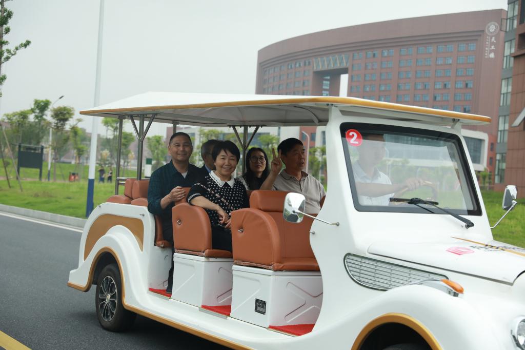 会前,全体与会人员乘观光车游览了将近1500亩的校容校貌,大家为校园的宽敞新潮、设计合理、设施周全,成为育人乐园而赞叹!此外,与会人员又参观了建筑面积达21000㎡、藏书达纸质版85万册、电子版159万册、有2200个阅览座位的图书馆,为图书馆门内醒目处塑有“静学于满目书香,静思于千百书卷”的格言,分有学生阅览室、教师阅览室、少儿阅览室,借书者需刷脸入馆,阅读高峰时可以预约座位等先进设施而赞叹!