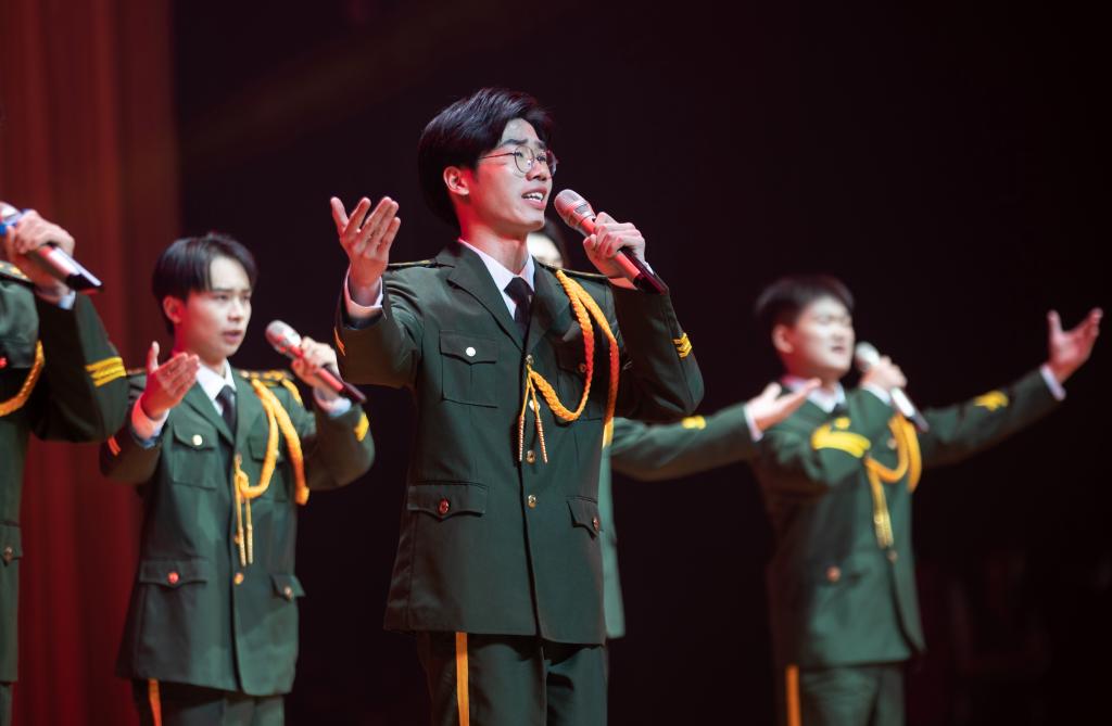 表彰大会结束后,纪念“五四”运动104周年文艺汇演正式开始。艺术与设计学院电声乐队演唱《别在问我什么是迪斯科+花火》迅速点燃现场氛围,全场观众挥舞着荧光棒,开启了文艺汇演的第一篇章——《忆青春》;一条条跃动的红色长扇形象演绎了红色神韵,师范学院舞蹈《红色摇篮》描绘着热血青年致敬革命先辈、传承红色经典的心路历程;艺术与设计学院男声组带来小合唱《那一片红》,着一身戎装,诵一首赞歌,以赤子之心唱响那一片红,诠释着对祖国的无限热爱;师范学院学子朗诵《少年中国说》,唤起宜职少年为中华之崛起而读书的赤诚决心,台下观众热烈响应,齐声合诵。