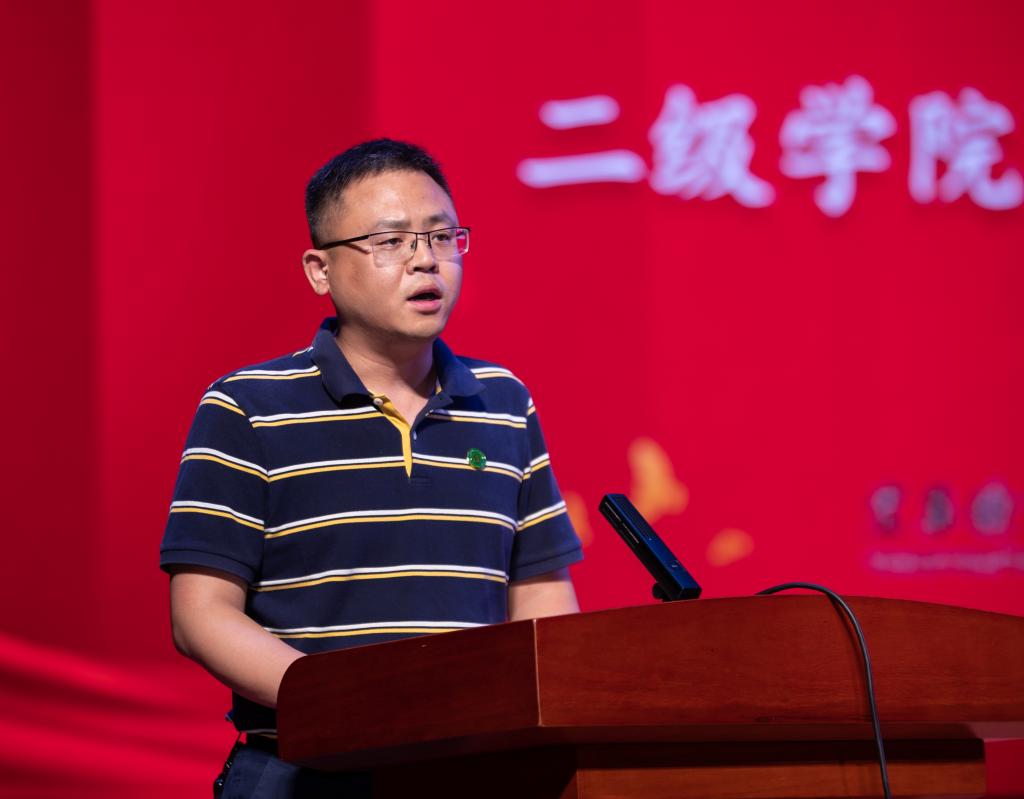 党委副书记黄继斌解读“春风宜人”师德品牌建设实施方案。他指出学校将围绕“一核三维五立”开展工作,以“爱生如子”育人理念为核心,教学、育人、科研三个维度互动共进,实施“立魂、立本、立基、立镜、立范”五大工程,把师德师风建设贯穿教育教学全过程,早日实现“德技双馨春风来,润物宜人繁花开”的师德品牌建设目标。