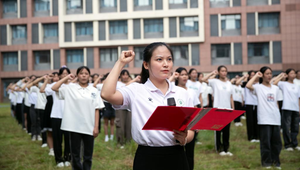 随后,邱军发表讲话,对李晖校友的热心捐赠表示感谢,并高度概括了孔子的教育思想精髓,对在场的所有师生提出殷切希望,他号召大家以先贤孔子为榜样,坚定“躬耕教坛,强国有我”的志向与抱负,牢记孔子的教诲和为人处世之道,为己修身,为国修业,为实现学校的高质量跨越式发展而努力奋斗。最后,全体师生在孔子像前进行庄严的教师誓词宣誓。