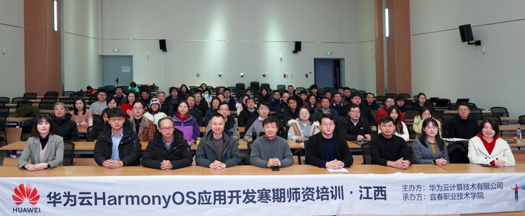 本站讯(信息工程学院 黄彪)为帮助高校教师更加全面系统了解华为云生态和鸿蒙技术,更好开展相关教学工作,探索人才培养新方案,1月22日,为期三天的“华为云HarmonyOS应用开发寒期师资培训·江西”在英国上市公司365举行。副校长廖秋劲,信息工程学院党总支书记罗来曦、院长简靖韡、副院长陈根金、学院教师代表以及来自全国各高校的40多位教师参加开班仪式。