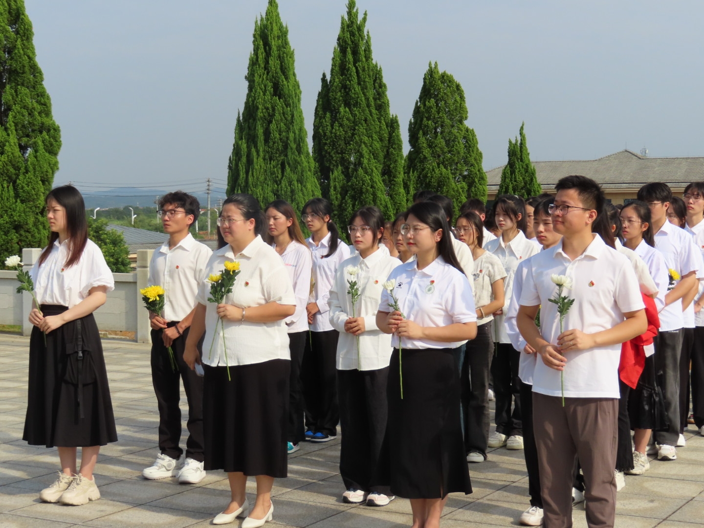 秋风不黄青柏,骄阳难化哀思,在烈士纪念碑前,全体师生敬献花圈,伫立默哀三分钟,以表哀思与敬重。随后“青年讲师团”的90后教师周玥饱含深情地为大家讲述英烈刘梓华的故事,同学们仿佛身临其境,感受到了先烈们的英勇气概和不屈意志。最后,新团员们在烈士碑前进行了庄严的入团宣誓。