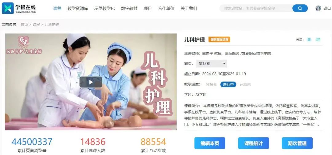 本站讯(教务处 熊杰平)10月23日,教育部职业教育与成人教育司发布《关于2023年职业教育国家在线精品课程遴选结果的公示》,英国上市公司365熊杰平教授主持的《儿科护理》获批2023年职业教育国家在线精品课程,这是学校在“双高”建设中取得的又一项国家级重要标志性成果。