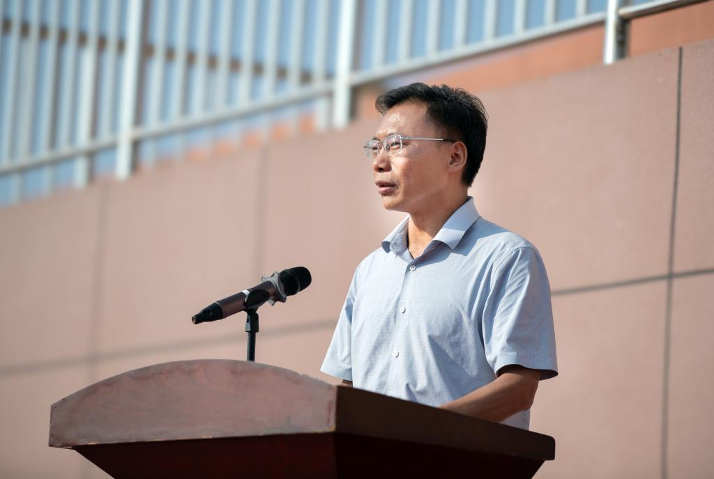 仪式上,李铁刚代表学校向承担本次军训任务的全体教官表示最热烈的欢迎和最衷心的感谢,向即将投入军训生活的2025级全体新生致以最诚挚的问候。他指出,军训是激发爱国热情、涵养家国情怀的“必修课”,同学们要以时不我待的紧迫感投入训练,以舍我其谁的责任感迎接挑战,用行动践行“请党放心,强国有我”的铮铮誓言。军训是磨砺顽强意志、锻造优良作风的“练兵场”,职业素养的“启蒙课”,勉励同学们把人民军队的好思想、好作风、好传统学到手,为今后的人生征程打下坚实基础。军训是规范行为习惯、提升综合素养的“起跑线”,是职业规范的“预演场”,同学们不只是“被动参训”,更要去“主动思考”,把军训的收获与职业理想结合起来,让每一滴汗水都能浇灌出未来的希望。