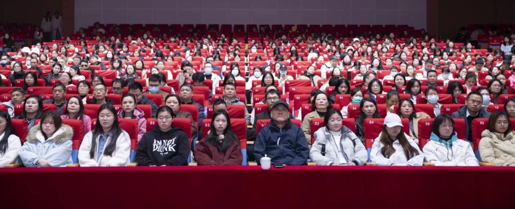 镜头转向和平岁月,荧屏上的照片,展现了边防战士身穿旧棉衣坚守哨卡、曾雍雅将军顶风冒雪深入洞朗等边境地区的身影。曾莹谈到,父亲的忠诚既蕴藏于战火中的勇毅,也融入和平年代的坚守。他一生中两次重要告别——长征前告别父母,踏上救亡征途;和平时期告别妻儿,远赴西藏戍边十载。两次转身,皆为家国现场,曾莹展示了数份泛黄的“北上无音讯”烈士证书,无声诉说着牺牲的壮烈。通过纪实影像与深情讲述,师生们在“敬初心水、取忠魂土”的叙事中!热血担当。当讲到“长明灯永远为英烈亮着”时,会场笼罩在庄重的静默中,许多师生动容不已。