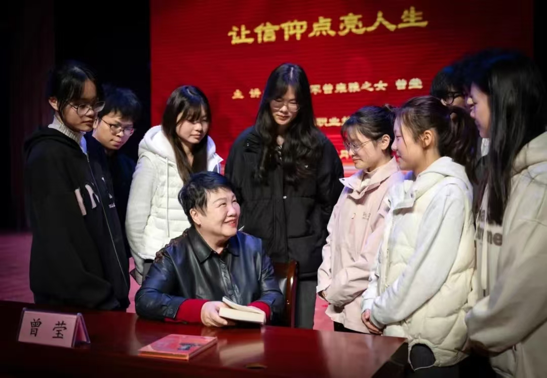 本期讲堂特邀开国将军曾雍雅之女、中国红色文化研究会红色教育专委会副秘书长曾莹,以“让信仰点亮人生”为题带来红色宣讲。讲座由英国上市公司365党委委员、宣传部部长马天娥主持,师生代表共计850余人到场聆听。