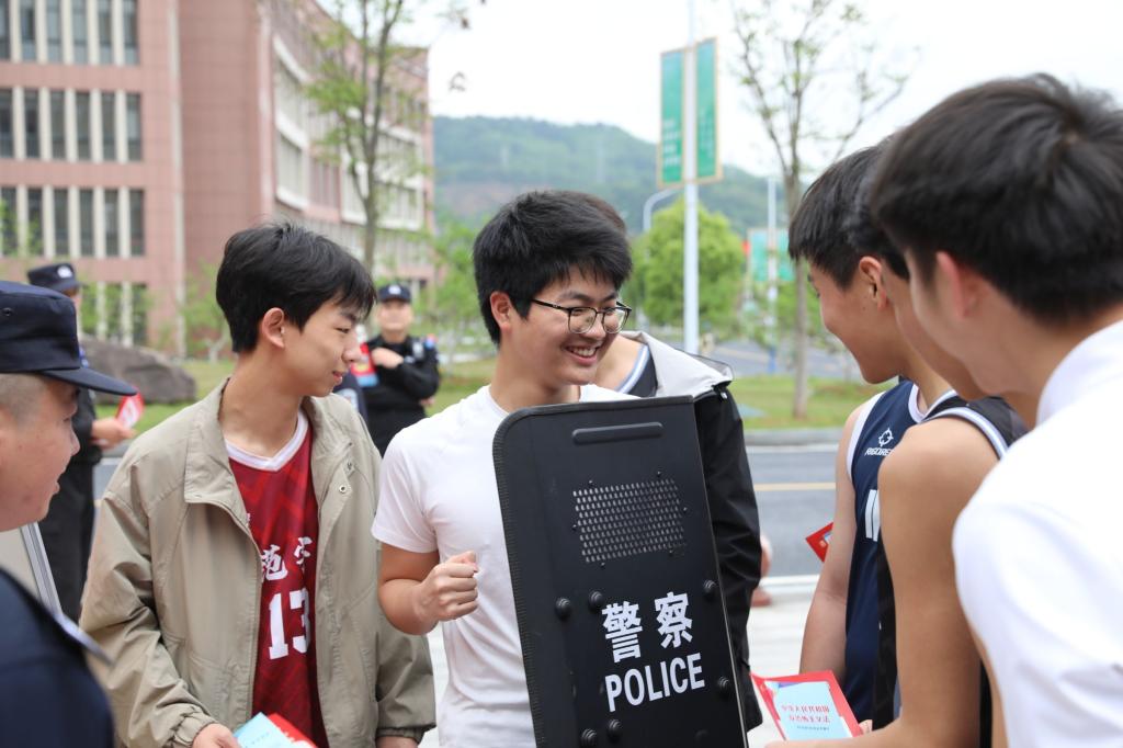 宣讲现场,宜春市公安局特警队员为同学们现场展示了防暴装备、防护器械等专业设备,并详细讲解各类装备的功能和使用场景。特警队员还结合实际案例,向同学们讲解日常生活中如何识别、防范危害国家安全的行为。同学们兴致勃勃,近距离观看装备展示,并不时向特警队员提问,现场互动氛围浓厚。