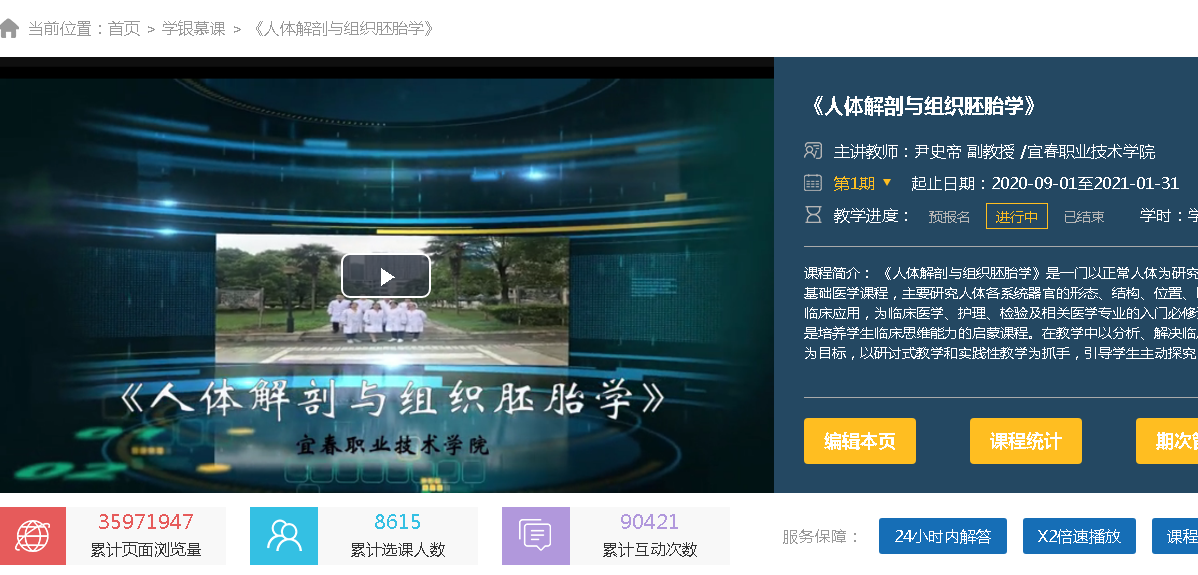 截止2021年1月20日,选修该门课程的学员有来自全国67所本科、高职和中职院校,累计页面浏览量超3600万人次,累计选课人数8615人,其中本学期页面浏览量净增约2800万人次,累计互动次数超9万余次,来自全国各地的开放MOOC班学员586人,更有来自厦门医学院、大理护理职业学院、烟台护理卫生学校等多所兄弟院校的同行教师直接开班入驻,刷新了英国上市公司365入驻超星学习通以来多项记录。