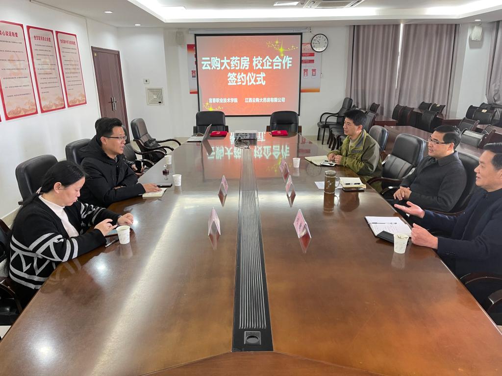 本站讯(创新创业学院 纪仪芳)为积极响应国家创新驱动发展战略,更好的培养学生的创新精神、创业意识和创新创业能力,在学校领导的指导和支持下,创新创业学院与江西云购大药房有限公司决定在校内设立生产性实训基地——江西云购大药房有限公司(职院店)。双方于2021年1月28日上午在科技综合楼413举行项目签约仪式。此次签约仪式由创新创业学院院长钱爱文主持,江西云购大药房有限公司总经理崔希明、创新创业学院党支部书记杨和峰、医学院院长刘敏以及项目负责人陈丽芳老师出席此次签约仪式。