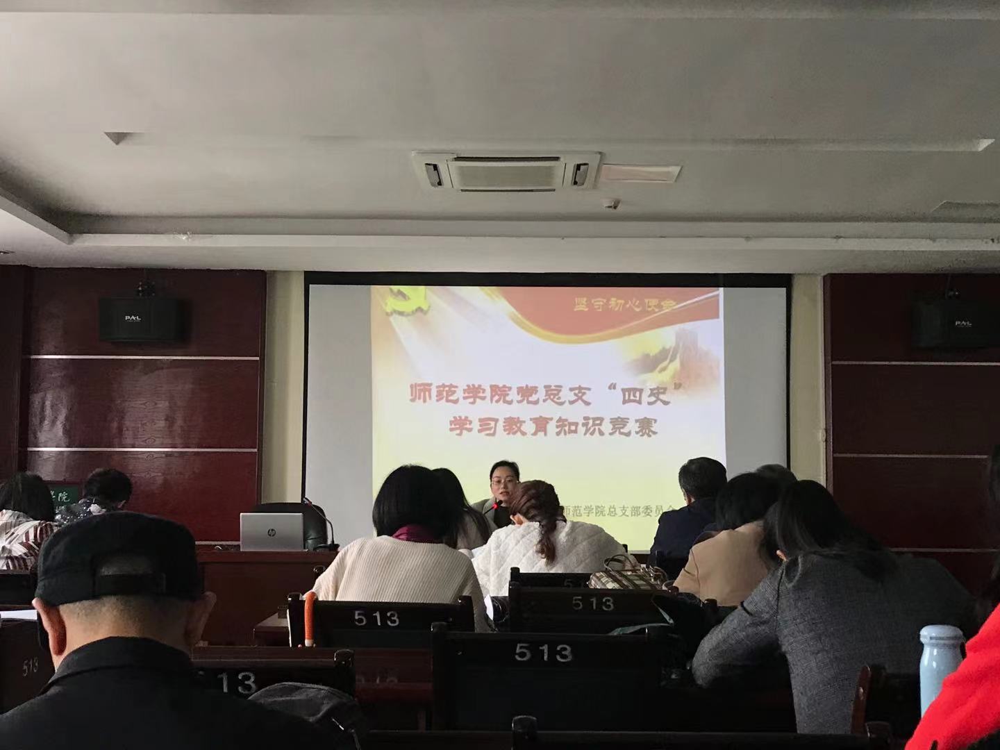 本站讯(师范学院党总支 席睿琪)2021年4月27日下午,师范学院党总支组织全体党员在科技综合楼513会议室开展了党员学习活动。学习活动之前,师范学院党总支给每位党员发放了专门印制的《党史学习教育笔记本》,学习委员席睿琪带领大家重点学习了习近平总书记致清华大学、中国人民大学、西藏民族大学、哈尔滨工业大学、厦门大学的建校周年贺词,同志们认真听讲,用心做学习笔记。