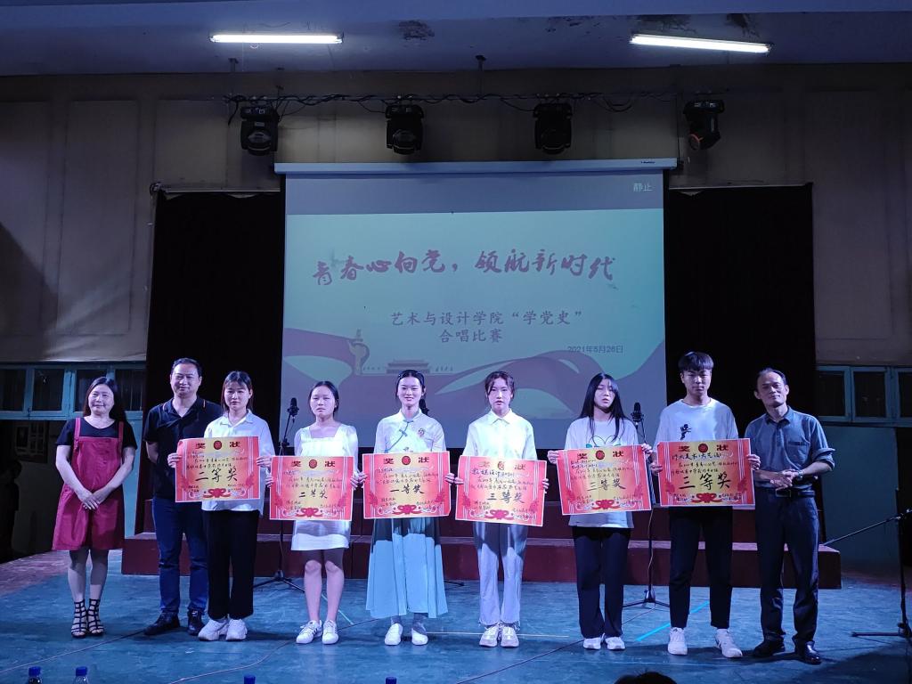 本站讯(艺术与设计学院 吴卿妍)为进一步激发广大青年爱党爱国爱社会主义的热情,充分展示新时代青年积极向上、紧跟党走的良好精神风貌。艺术与设计学院于2021年5月26日晚上7:00在科技楼多功能厅举办“青春心向党领航新时代”合唱比赛。观看本次合唱比赛的领导及评委老师有艺术设计学院党总支书记罗平,副院长付菲,党总支副书记兰七荣,音乐专业老师陈菁,郭秋晴。