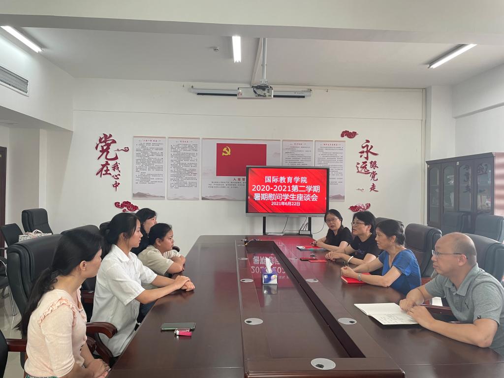 本站讯(国际教育学院 金岩)为有效落实学校资助政策,给予家庭经济困难学生更多关怀和帮助,6月22日上午,国际教育学院在党员活动室401开展慰问学生座谈会。座谈会由党总支书记刘海云主持。校党委委员刘江毅副校长、我院领导班子成员以及相关班主任和受助同学参加了座谈。