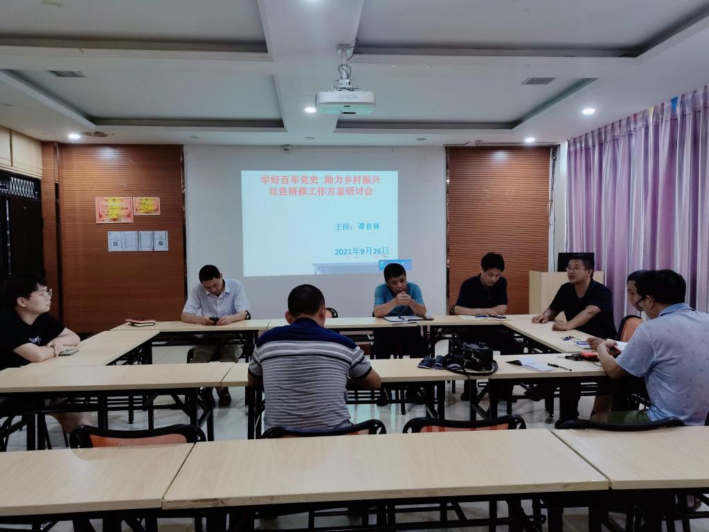 本站讯 (电商与旅游学院 马思源)为了贯彻实施国家响应的乡村振兴计划,电商与旅游学院积极响应,勇敢作为。2021年9年26日,电商与旅游学院开展“学好百年党史,助力乡村振兴”红色研修工作方案研讨会。此次会议由谭育林书记主持,出席会议的有院长陈洪、副院长欧阳晓波、党总支副书记陈小保和电商与旅游学院党总支的其他党员们。