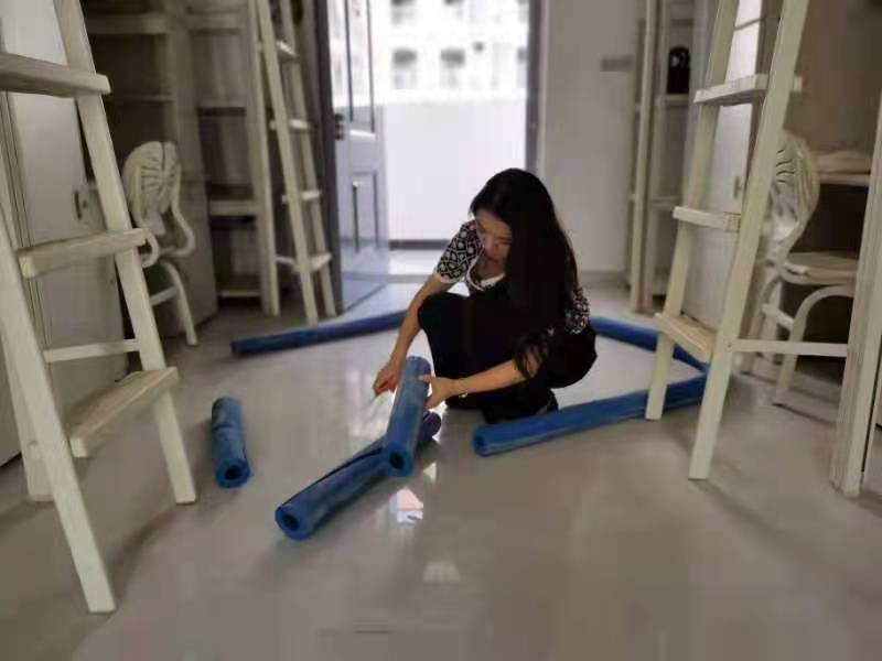 当了解到学生宿舍安装的消防管道可能会导致高一点的同学爬上床时撞到头,大家就群策群力,立即想办法解决。10月5日,全体党员同志、部分辅导员自发地来到新校区宿舍楼,用塑料泡沫管包扎消防管道,确保学生有个安全舒适的居住环境。谢海英书记强调:“虽然学生撞到头的可能性很小,但是只要有一位同学撞到,那就是我们的服务工作没做好。我们要想在前面、做在前面,这才是爱生如子的真正体现。”
