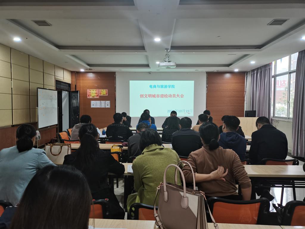 本站讯(电商与旅游学院 马思源)为了扎扎实实做好宜春市文明城市创建工作,我们必须迎接大考,实干定力,接续奋斗。2021年10月19日,电商与旅游学院召开文明城市创建迎检动员大会,参与会议有院长陈洪、副院长欧阳晓波、党总支书记谭育林、党总支副书记陈小保和全体教职工20余人。