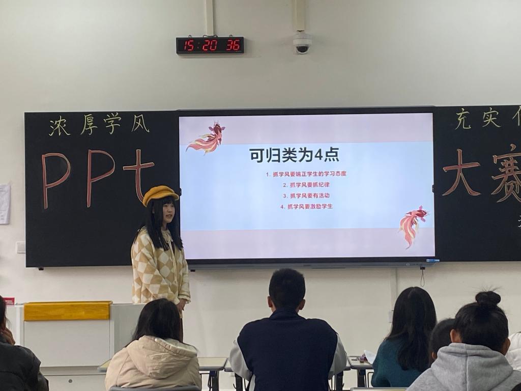 本站讯(护理学院 刘明健 学生记者 朱文静)为进一步加强学风建设,激发同学们的学习的积极性和主动性,帮助同学们更好地学习专业知识,提高学生的综合素质。11月19日下午,护理学院于和济楼C306开展“浓厚学风,充实你我”PPT风采大赛。特邀学工科陈丽红老师担任本次活动的评委,21级新生共65名选手参赛。