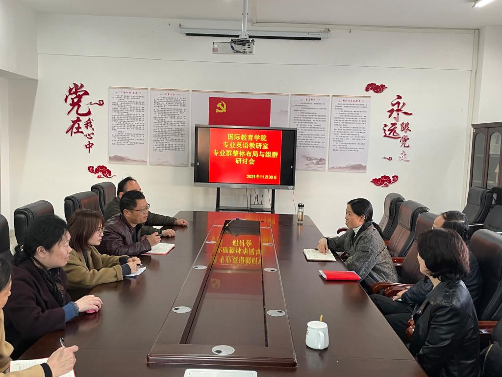 本站讯(国际教育学院 李强)11月30日下午2点半,国际教育学院专业英语教研室组织专职教师在科技综合楼401集中观看学校专业群整体布局与专业组群建议视频。专职教师结合英国上市公司365发展历史和小学英语教育专业的实际详细讨论了外语、师范专业群的发展特点和组群逻辑,并提出了各自的建议。本次专业群讨论会由韩菁院长主持。
