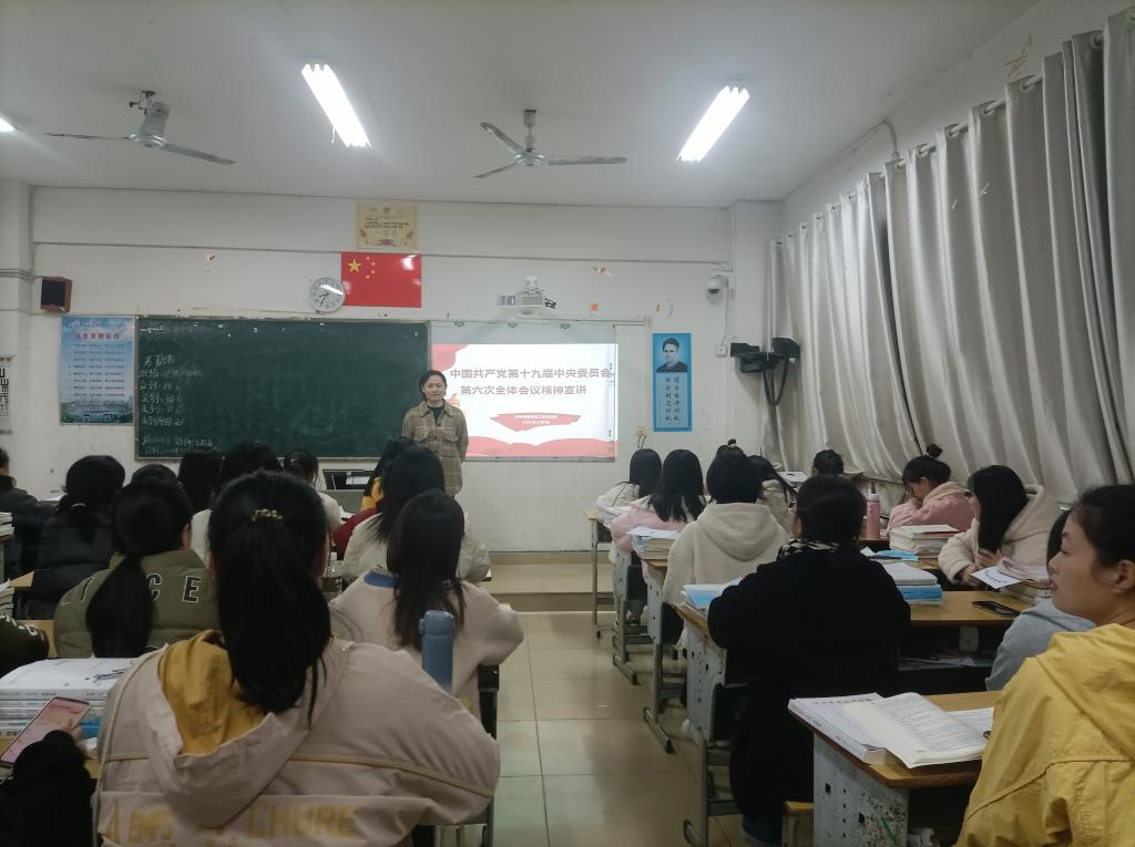 本站讯(护理学院 陈丽红)为进一步深入学习宣传贯彻党的十九届六中全会精神,扎实推进党史学习教育,持续引领广大青年大学生厚植爱党爱国情怀,汲取奋进智慧力量,掀起学习贯彻党的十九届六中全会精神的热潮,把引领青年大学生听党话跟党走持续做深做实。12月5日至8日,护理学院各党支部开展支部联系班级活动,专题宣讲党的十九届六中全会精神。