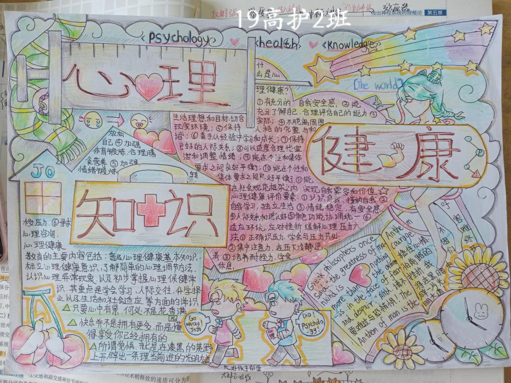 同学们心灵手巧,利用课余时间收集资料,精心设计编排,一副副作品,构思精妙,内容丰富,图文并茂地将心理健康知识及常见心理问题的处理小技巧诉诸于画纸上。最终,经过评委的认真评审,19高护2班的手抄报作品荣获本次比赛的“一等奖”。