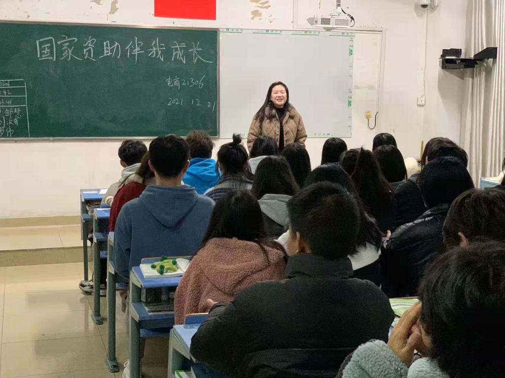 本站讯(电商与旅游学院 马思源 郭雪梅)为了加强学院学风建设,加强学生的诚信、励志、感恩和成才教育。电商与旅游学院全体班级于12月21日晚7点组织召开了“资助伴我成长”主题班会。