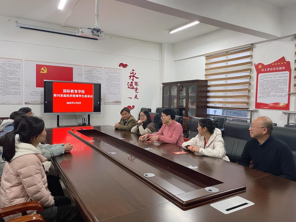 本站讯(国际教育学院 金岩)为有效落实学校资助政策,给予家庭经济困难学生更多关怀和帮助,1月6日下午五点半我院在党员活动室401开展慰问家庭经济困难学生座谈会。座谈会由党总支书记刘海云主持。校党委委员刘江毅副校长、我院领导班子成员以及相关班主任和受助同学参加了此次座谈。