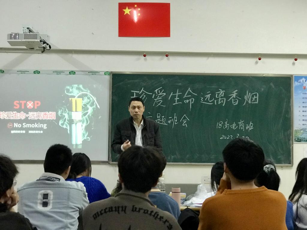 本站讯(电商与旅游学院 马思源)为更好落实无烟校园创建工作的要求和校园防疫措施,电商与旅游学院先后组织班级召开“珍爱生命远离香烟”主题班会和教职工大会,号召全体师生参与到无烟校园的创建和校园防疫工作中来。