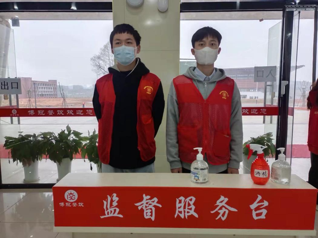 为了缓解食堂就餐密集压力,规范就餐秩序,各班同学们成立情防控志愿引导员队伍,积极前往西区食堂开展志愿服务活动,监督同学们带好口罩,排队等候时保持一米距离。