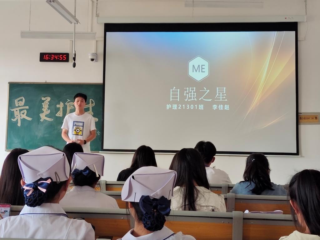 活动分班级推荐和学院终评两个环节,根据班级推荐和学院初评,遴选20名候选人参加现场展示。展示过程中,候选人现场演讲,展示自己在学习、生活、工作和社会实践等方面的感悟,呈现新时代护理人的精神风貌。经综合评选,欧阳云、何静娴等10位同学荣获本届“最美护生”称号。