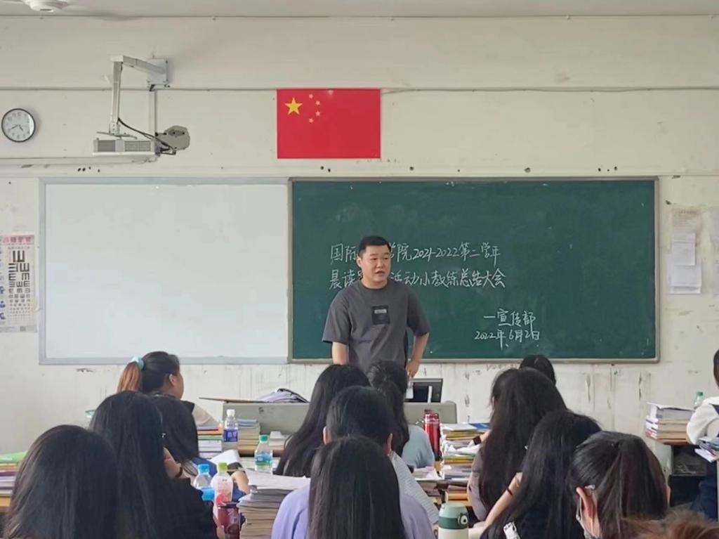 本站讯(国际教育学院 温雯丽)为营造我院良好的学习氛围,提高我院学生的英语素养和语音语调,国际教育学院于2022年6月2日上午在第一教学楼X401教室开展本学期的小教练总结表彰会议,由杜欣宇老师主持。
