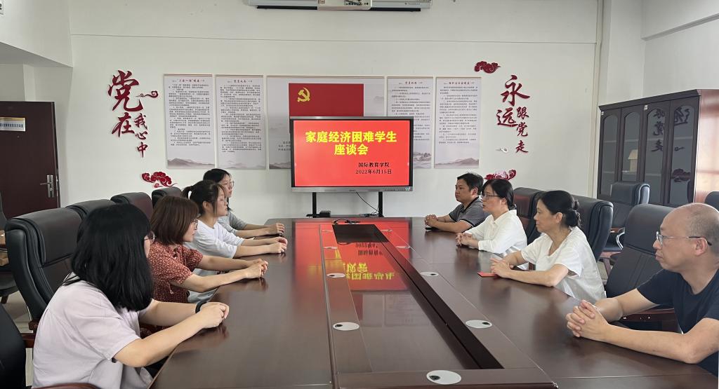 本站讯(国际教育学院 潘艺)为扎实做好学生资助工作,传递学校关心家庭经济困难学生的正能量,国际教育学院于6月15日下午在科技综合楼401开展家庭经济困难学生座谈会。座谈会由党总支书记刘海云主持,我院领导班子成员以及相关班主任和受助同学参加了座谈。