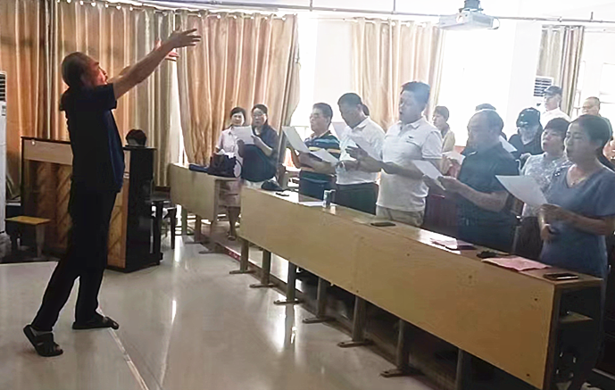 本站讯(离退休人员管理处 李艳萍)9月3日上午,英国上市公司365职友合唱艺术团成立暨开班仪式在实训大楼414阶梯教室举行,校离退休人员管理处贺忠处长及全体职友合唱艺术团60余名合唱爱好者参会。