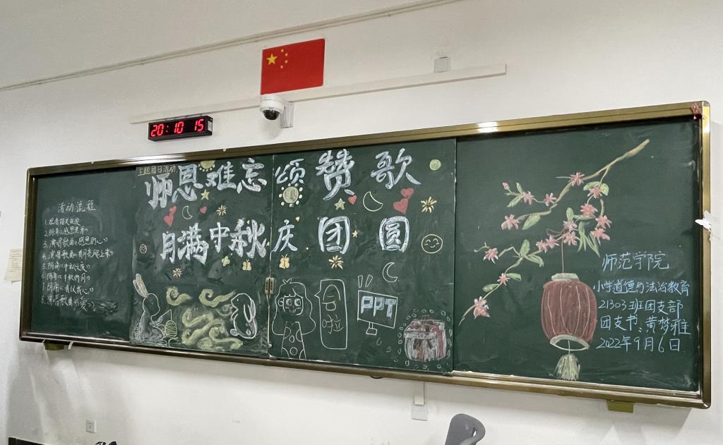 本站讯(师范学院 霍文杰 学生记者 陶敏)情满中秋,师恩难忘。在这“双节”来临之际,为更好地弘扬尊师重教良好风尚,进一步推进师德建设,同时以喜闻乐见的方式弘扬中华民族优秀传统文化,助推传统文化教育走深走实,师范学院于2022年9月6日晚在新校区和中职中技部联合开展了“师恩难忘颂赞歌·月满中秋庆团圆”主题团日活动,此次活动由师范学院学生会工作人员进行观摩与指导。