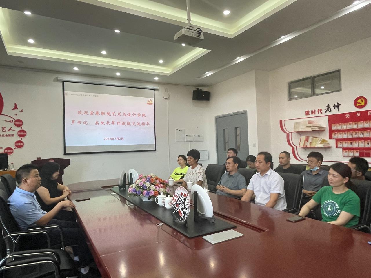7月2日,艺术与设计学院党总支书记罗平带领大家前往江西陶瓷工艺美术职业技术学院陶瓷艺术分院交流学习党建工作。首先,党员干部一行实地观摩了陶瓷艺术分院党员活动室、大师工作室,学习了基础党建资料,交流了党建和业务工作相融合,主题党日活动品牌创新等新思路、新做法。随后,全体党员到江西陶瓷工艺美术职业技术学院美术馆,参观学习红色文化、清廉文化作品展。一幅幅震撼的革命历史题材画作、一件件珍贵的红色展品,振奋人心。参观中,全体党员驻足仔细观看,互相交流心得体会。通过本次参观学习,我院在转变党建工作理念、规范建设党建阵地等方面学到了很多好的经验,在搭建平台、组建队伍、开展实践活动等方面的思路也得到很大启发,今后将继续查漏补缺、改进不足,将学习成效切实运用到党建工作中来,进一步规范学院的党建工作,努力开创党建工作新局面。
