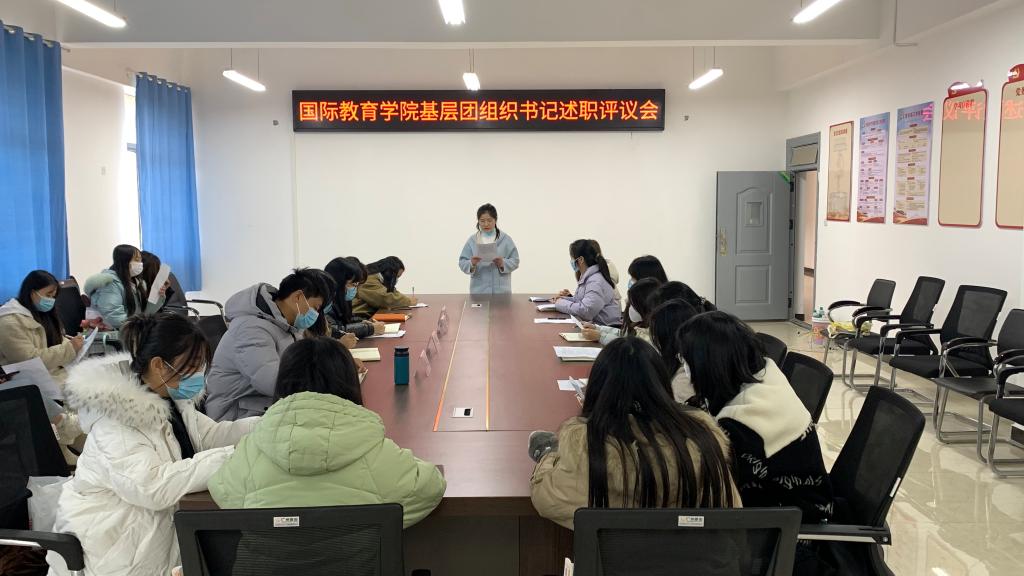 本站讯(国际教育学院 杨琨 学生记者 廖江钰)为认真学习贯彻党的二十大精神,落实团中央关于深化学校共青团改革的相关工作要求,12月7日中午,国际教育学院在博达楼5楼党员活动室开展了2022年度基层团组织书记述职评议大会。学院党总支书记刘海云、院全体学工教师、全体团支部书记及各班代表参加会议,会议由学院团总支书记杨琨主持。