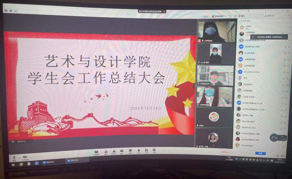 本站讯(艺术与设计学院 吴卿妍)为持续深化学生会改革,建设职能规范、责任明晰、精简高效的学生干部队伍,真正发挥学生干部的桥梁纽带作用,12月15日晚,艺术与设计学院开展学生会工作总结大会。此次会议采取线上形式开展,院党总支书记罗平、党总支副书记兰七荣、学生会各部门成员出席此次会议。会议由院团总支书记吴卿妍主持。